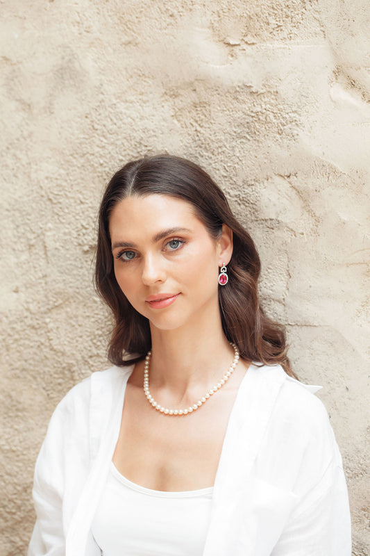 Double Cluster Diamond Cushion Cut Red Sapphire Ring